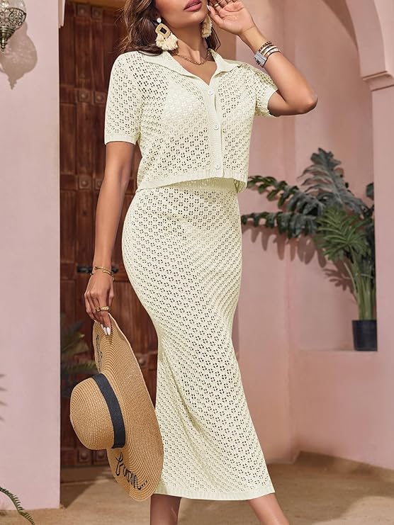 Sie werden unser CLARISA - Zweiteiliges Sommer-Set lieben, ein gehäkelter Strickstoff – ein absolutes Must-have für den Sommer! Perfekt für Strandtage mit Familie und Freunden. Es ist Ihre beste Wahl für ein modisches Outfit, denn Sie werden der strahlendste Hingucker in der Menge für einen Boho-Babe-Look sein!
